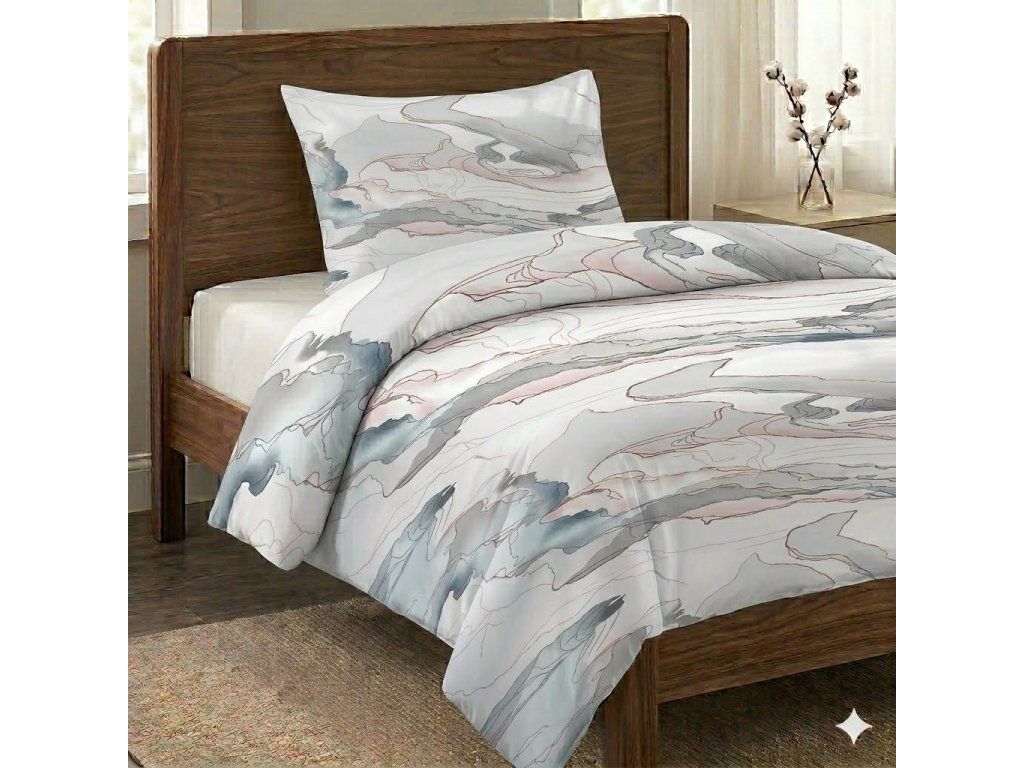 Ložní povlečení je vyrobeno z 100 % bavlněné tkaniny. Materiál používaný pro výrobu povlečení je velmi jemný a příjemný na omak. Hlavně díky vysoké hustotě dostavy jemných přízí.
