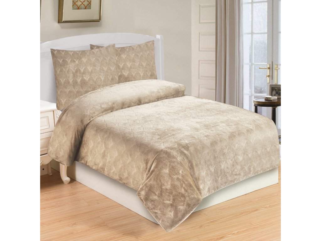 Povlečení mikroplyš - LISTY béžová 140x200, 70x90cm