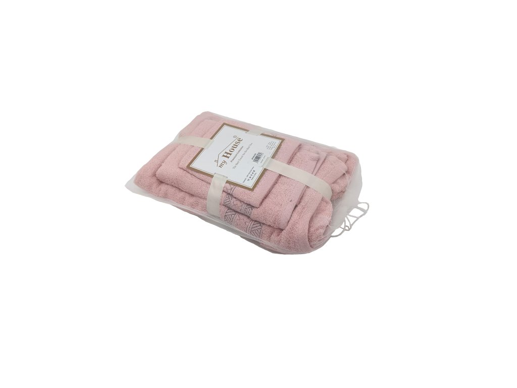 Sada obsahuje malý ručník 30 x 50 cm, standartní ručník 50 x 100 cm , osušku 70 x 140 cm a sáček na zavazování