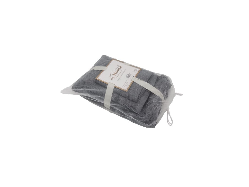 Sada obsahuje malý ručník 30 x 50 cm, standartní ručník 50 x 100 cm , osušku 70 x 140 cm a sáček na zavazování